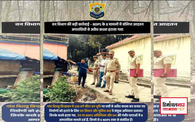 NDPS केसों में लिप्त आदतन अपराधियों से वन भूमि पर कब्जा हटाया , पुलिस और वन विभाग की संयुक्त कार्रवाई April 25, 2025 हिमांचलनाउ डेस्क नाहन