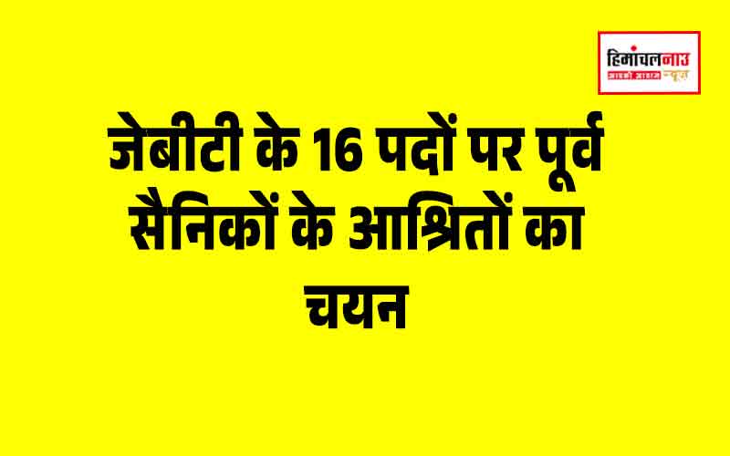 कांगड़ा में जेबीटी के 16 पदों पर पूर्व सैनिकों के आश्रितों का चयन , सात दिन में रिपोर्ट करने के निर्देश April 5, 2025 हिमांचलनाउ डेस्क नाहन