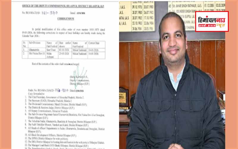 बिलासपुर जिले में दो स्थानीय अवकाशों में संशोधन, मकर संक्रांति पर बदली गई छुट्टी की तिथि January 12, 2026 हिमांचलनाउ डेस्क नाहन