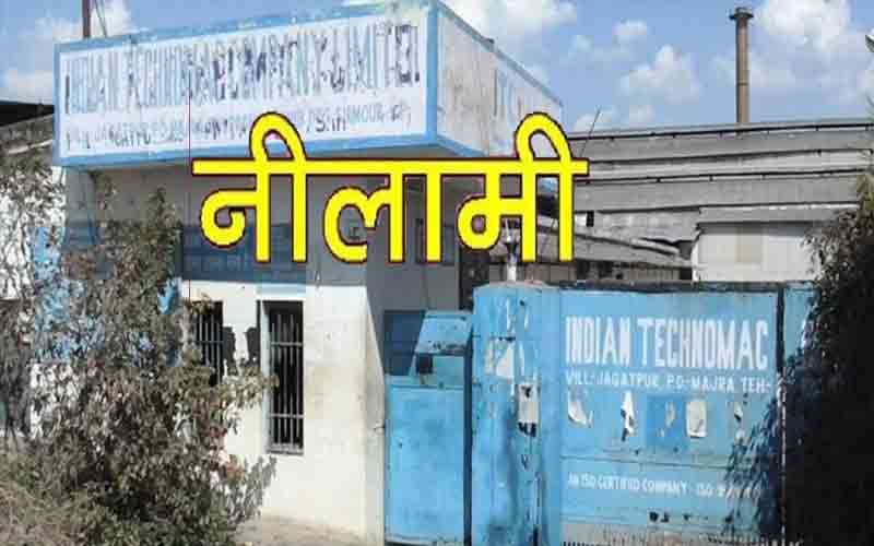 पांवटा साहिब के जगतपुर मिश्र वाला स्थित मैसेज इंडियन टेक्नोमैक कंपनी लिमिटेड की मंगलवार 28 दिसंबर को माननीय उच्च न्यायालय के आदेशों के बाद नीलामी के आदेश जारी किए गए हैं। प्रदेश सरकार को 2100 तथा अलग-अलग बैंकों को 16 सौ करोड़ से अधिक का चूना लगाने वाली कंपनी की नीलामी बोली तथा टेंडर से डाली जानी सुनिश्चित की गई है। नीलामी के लिए फैक्ट्री परिसर में 11:00 बजे सुबह का समय रखा गया है।