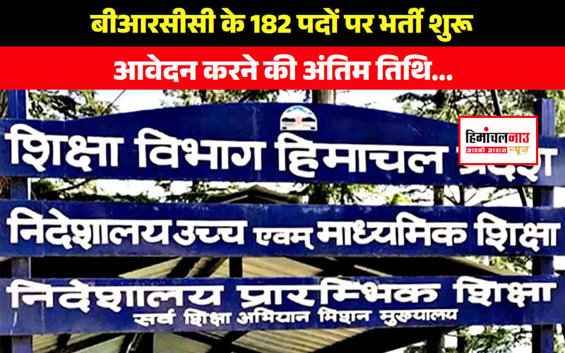 हिमाचल प्रदेश में बीआरसीसी के 182 पदों पर भर्ती शुरू, आवेदन की अंतिम तिथि… December 7, 2024 हिमाचलनाउ डेस्क
