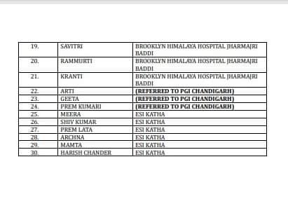 जानकारी के मुताबिक, पीजीआई चंडीगढ़ रेफर बद्दी की एक महिला कामगार की मौत हो गई, जबकि पीजीआई में ही भर्ती चार लोगों की हालत गंभीर है। मृतका की पहचान पिंकी पत्नी पवन, निवासी मखनूमाजरा, बद्दी के रूप में हुई है।