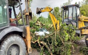 चलती कार पर अचानक गिरा विशालकाय पेड़, चालक…