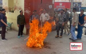 राष्ट्रीय देवभूमि पार्टी के कार्यकर्ताओं से पुलिस ने पहला पुतला छीना, तो दूसरा दिया फूंक