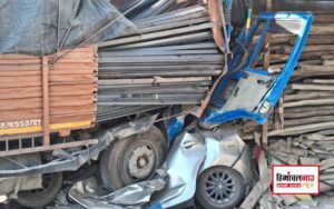 सरिया और एंगल आयरन से लदे ट्रक ने कुचली कार, अन्य वाहनों को भी नुकसान