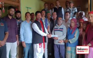 शिरगुल जनसेवा समिति राजगढ़ ने बारिश में ढहे मकान से बेघर परिवार को दी आर्थिक मदद