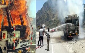 चलते ट्रक में अचानक भड़की आग, लाखों का नुक्सान