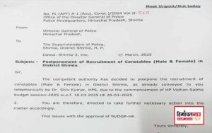 Shimla Police Constable Recruitment Postponed /शिमला में पुलिस कांस्टेबल भर्ती स्थगित , बजट सत्र के चलते लिया गया फैसला