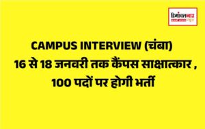 चंबा में 16 से 18 जनवरी तक कैंपस साक्षात्कार, 100 पदों पर होगी भर्ती