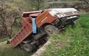 अनियंत्रित होकर खेतों में गिरा टिप्पर, चालक की मौत