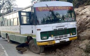 एचआरटीसी बस की हुई ब्रेक फेल, चालक की सूझबूझ से टला हादसा