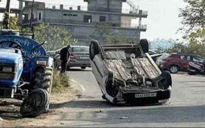 बीच सड़क पर अचानक पलटी चलती कार, एक व्यक्ति बुरी तरह जख्मी