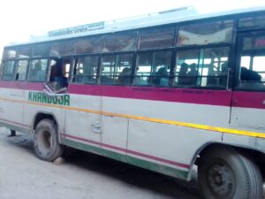 पहाड़ी से गिरी चट्टानों की चपेट में आई बस, हादसे में एक युवती घायल