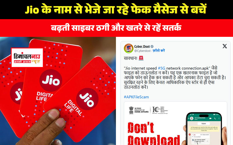 साइबर दोस्त ने X प्लेटफॉर्म पर पोस्ट करके चेतावनी दी है कि Jio के नाम से एक खतरनाक मैसेज आ रहा है। यह मैसेज एक APK फाइल के साथ आता है, जिसे डाउनलोड करने से आपका मोबाइल हैक हो सकता है। इस फाइल का नाम “Jio इंटरनेट स्पीड #5G नेटवर्क कनेक्शन.apk” हो सकता है, जो एक बड़ी धोखाधड़ी का हिस्सा है।