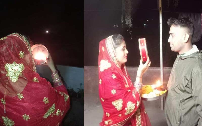 आंगन और छतों पर चंद्रमा की आरती उतारती नजर आई सुहागिने