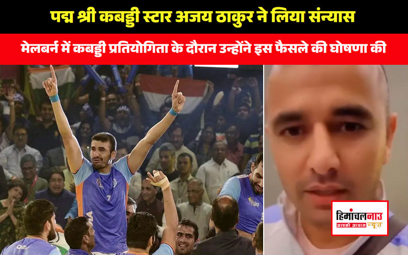 हिमाचल प्रदेश के अंतरराष्ट्रीय कबड्डी स्टार और पद्म श्री अजय ठाकुर ने आज अपनी लंबी और सफल कबड्डी यात्रा को अलविदा कह दिया। ऑस्ट्रेलिया के मेलबर्न में एक कबड्डी प्रतियोगिता के दौरान उन्होंने इस महत्वपूर्ण फैसले की घोषणा की। सोशल मीडिया पर एक वीडियो साझा करते हुए अजय ठाकुर ने अपने संन्यास की जानकारी दी और इस खेल में उन्हें मिले अपार प्यार के लिए देशवासियों का आभार व्यक्त किया।