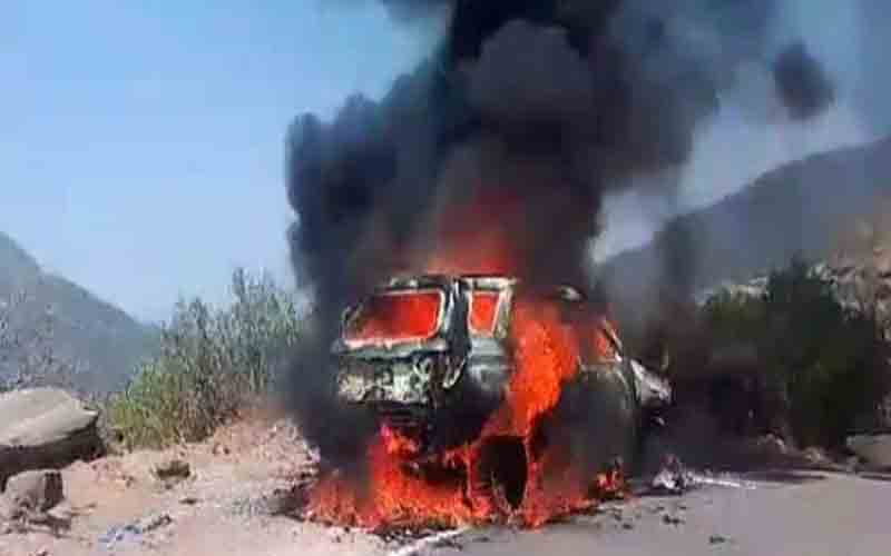 स्वारघाट में चलती गाड़ी में भड़की आग, बुरी तरह झुलसा चालक